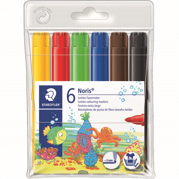 STAEDTLER 340 NORIS CLUB JUMBO COLOURING MARKERS 3.0MM ASSORTED WALLET 6