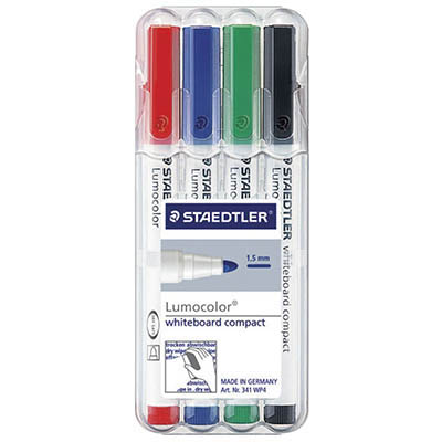 STAEDTLER 341 LUMOCOLOR COMPACT WHITEBOARD MARKER BULLET WALLET 4