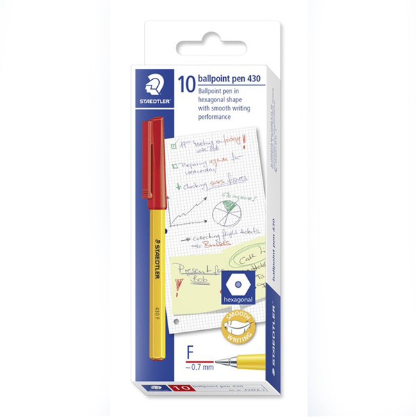 STAEDTLER 430 STICK BALLPOINT PEN FINE RED BOX 10