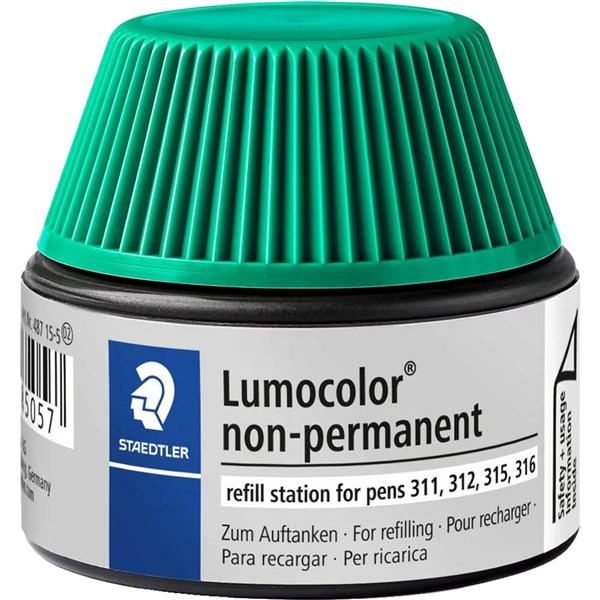 STAEDTLER 487-15 LUMOCOLOR NON-PERMANENT REFILL STATION 15ML GREEN