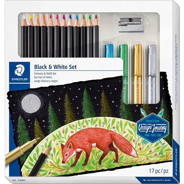 STAEDTLER 61 DESIGN JOURNEY BLACK AND WHITE SOFT COLOUR MIXED SET