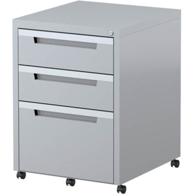 STEELCO CLASSIC MOBILE PEDESTAL 3-DRAWER LOCKABLE 630 X 470 X 515MM SILVER GREY
