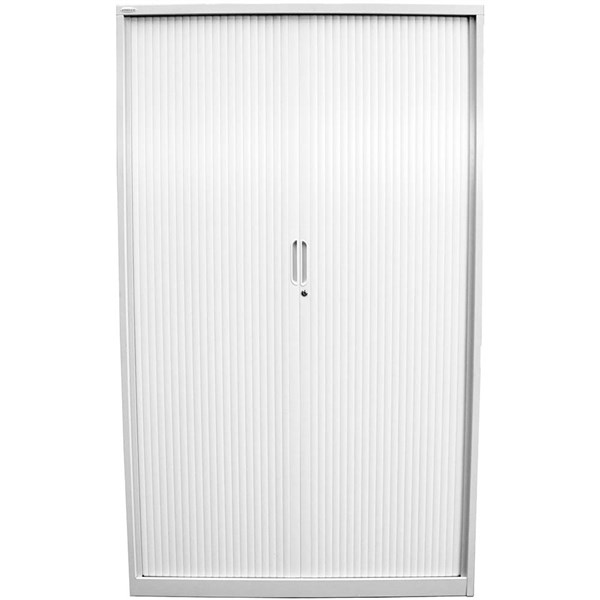 STEELCO TAMBOUR DOOR CABINET 3 SHELVES 1200H X 900W X 463D MM WHITE SATIN