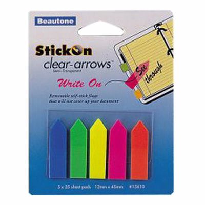 STICK-ON ARROW FLAGS 25 SHEETS 12 X 45MM ASSORTED PACK 5