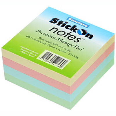 STICK-ON NOTES CUBE 400 SHEETS 76 X 76MM PASTEL