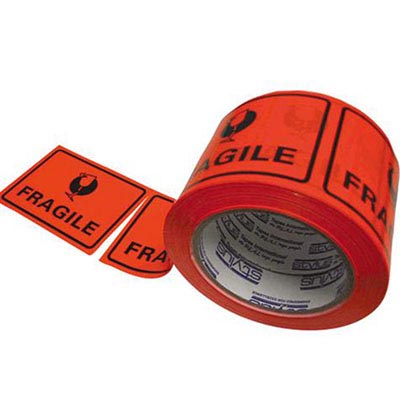 STYLUS PRINTED PACKAGING LABELS FRAGILE 75 X 50MM FLUORO ROLL 500