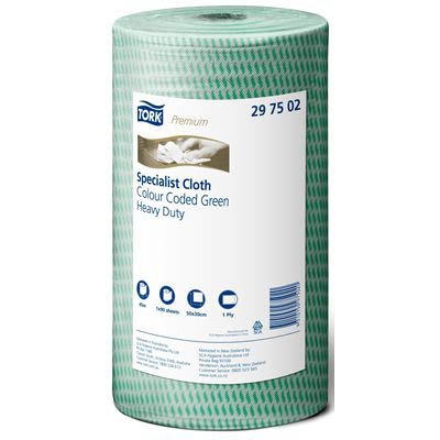 TORK 297502 HEAVY DUTY CLEANING CLOTH 300MM X 45M GREEN ROLL 90 SHEETS