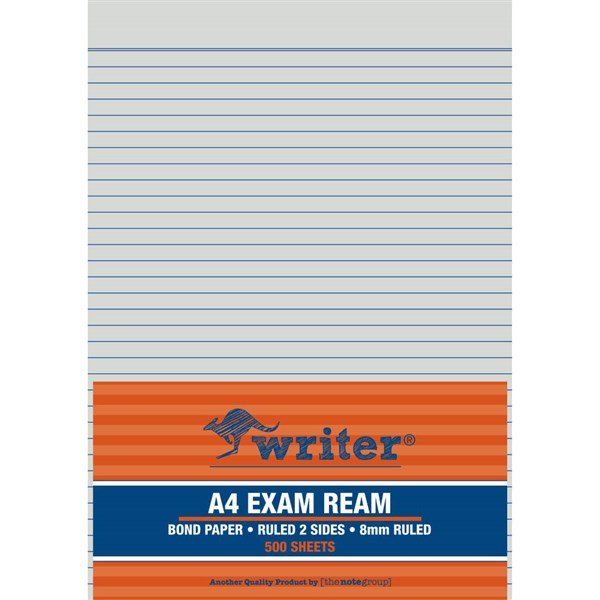 WRITER EXAM PAPER RULED UNPUNCHED 60GSM 8MM A4 WHITE 500 SHEETS