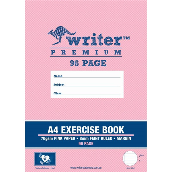 WRITER PREMIUM EXERCISE BOOK FEINT RULED 8MM 75GSM 96 PAGE A4 HEART