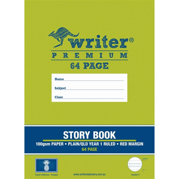 WRITER PREMIUM STORY BOOK QLD RULING YEAR 1 PLAIN / RULED 24MM 100GSM 64 PAGE 330 X 240MM PINEAPPLE