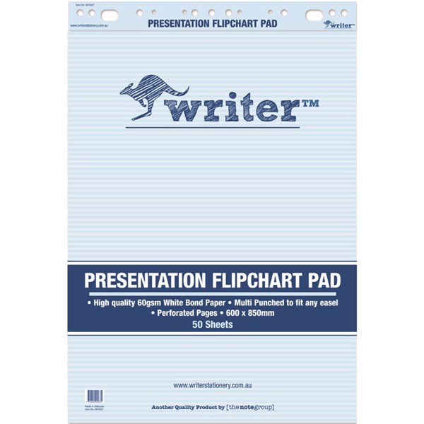 WRITER PRESENTATION FLIPCHART PAD 60GSM 50 SHEETS 850 X 600MM WHITE PACK 2