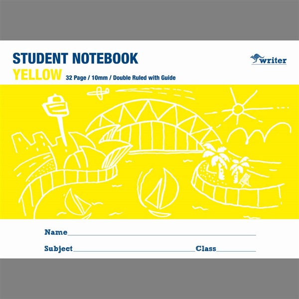 WRITER STUDENT NOTEBOOK 10MM DOUBLE RULED/GUIDE 32 PAGE 250 X 175MM YELLOW